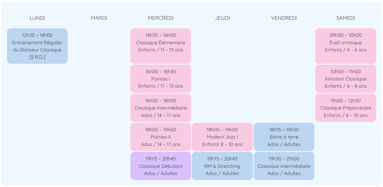 | 19h15 – 20h45 Classique Débutant Ados / Adultes |